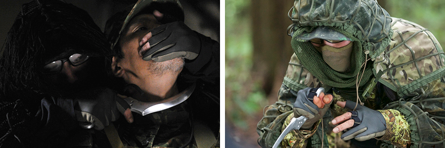 野外において敵の監視の目を欺くために用いられ、スナイパーやスカウトが戦場で使用するものである。彼らにとって自分の存在が知られることは死を意味するからだ。偽装の基本は天然偽装7割、人口偽装3悪と言われている。しかし、天然の植生は地域ごとにわずかに違い、また時間と共に変化する。自然の掟に反した天然偽装は発見の要因となりうる。かと言って、全身に過度に付けたバーラップ(麻紐等の人口偽装)などもってのほか。変化し続ける環境に合うわけもなく、シルエットを大きくし濡れて重くなり行動を妨げる。まして本物のスナイパーやスカウトの目を欺けるわけもない。